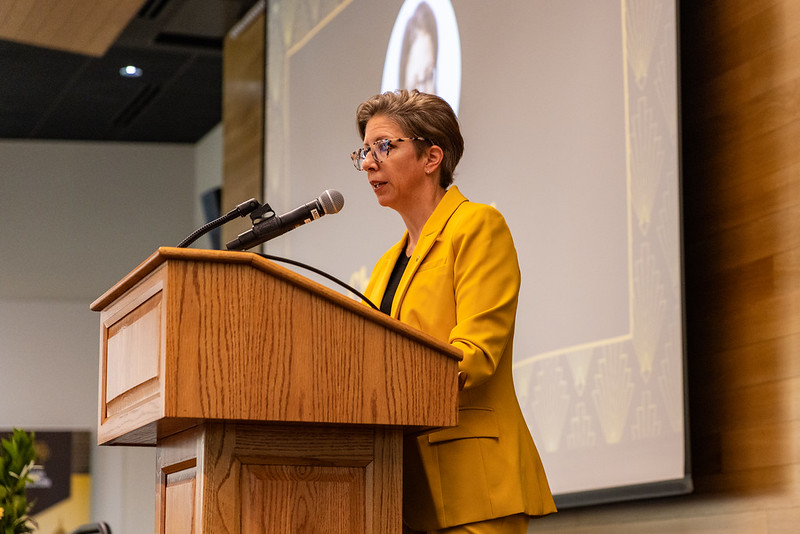 The keynote address was delivered by Patty (Slater) Hummel, BS Ed `86, whose father-in-law established The Hummel Family Foundation in 2016. Since then, the foundation has provided scholarships to more than 300 Mizzou students, helping them pursue degrees in teaching, medicine, law, veterinary science, public health, and engineering.